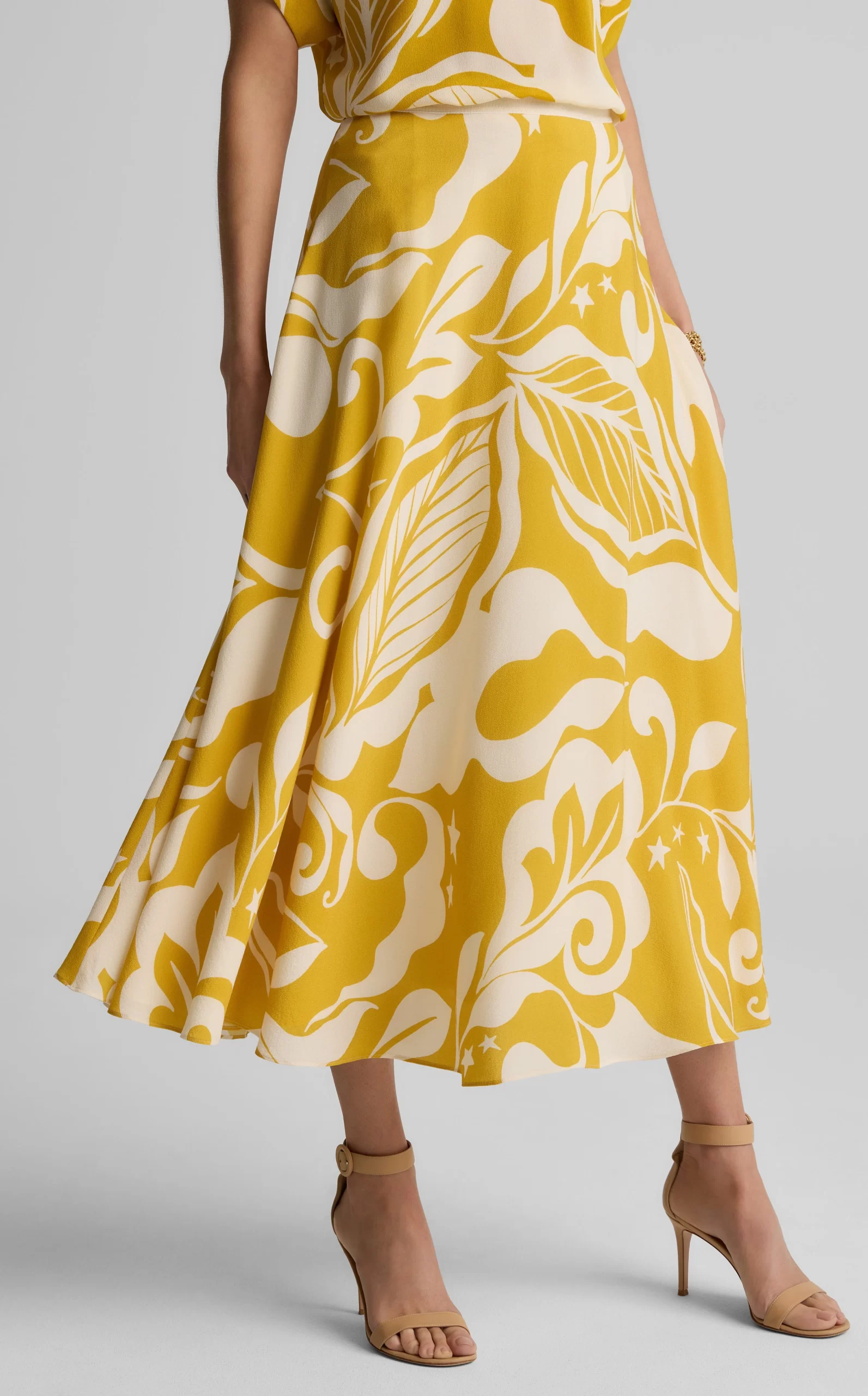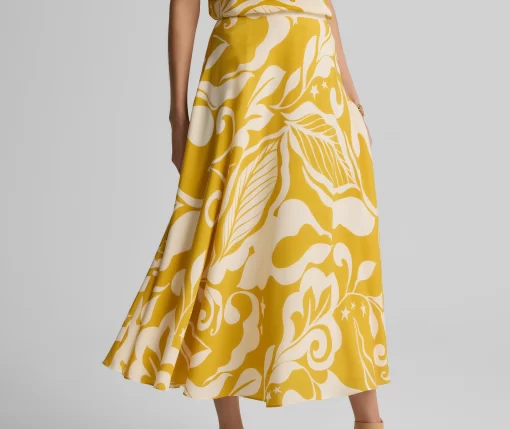 With its dynamic leaf print and airy, midi-length silhouette, the Eden in brilliant Ecru and Goldenrod makes a confident statement however it’s styled. For playful polish, pair this playful skirt with the matching Joan Top, or mix and match with your favorite separates—from blazers to blouses and tees—for endless wardrobe versatility.