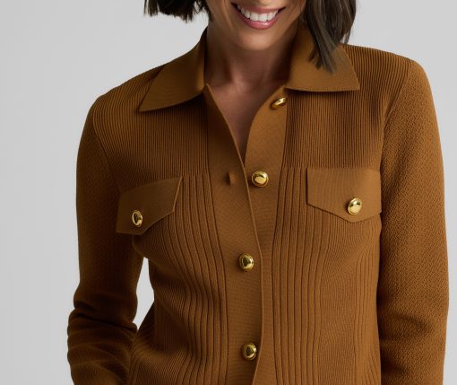 Worn on its own or layered over shells and tees, the Ellis instantly adds sophistication to any ensemble with its bold gold buttons and decorative flap pockets. Our comfortable and lightweight Madison Knit gives this delicately ribbed jacket both ease and polish as you move effortlessly through workdays and weekends alike.