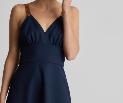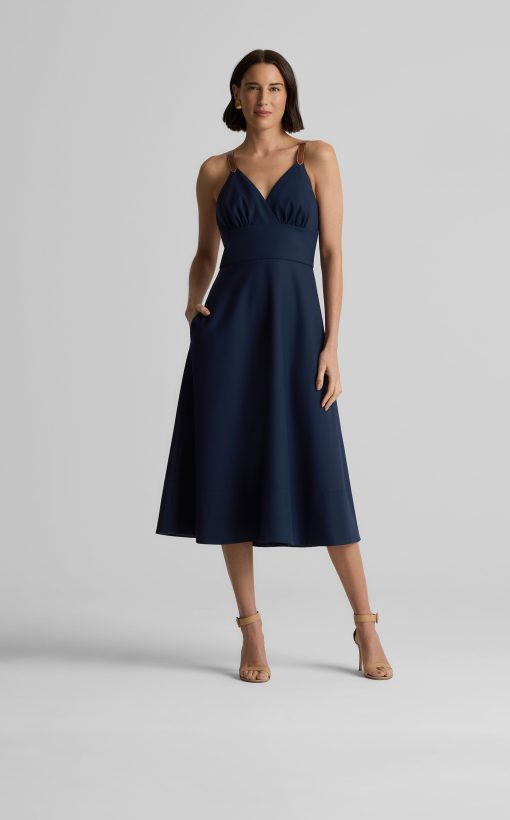 Sleek Stretch Gabardine meets luxe leather in this supremely wearable dress you’ll keep in rotation year-round. With its graceful v-neckline, nipped-in waist, and skirt that elegantly floats away from the body, the Emerson offers a flattering fit plus a bit of bold edge that shifts seamlessly from day to night.