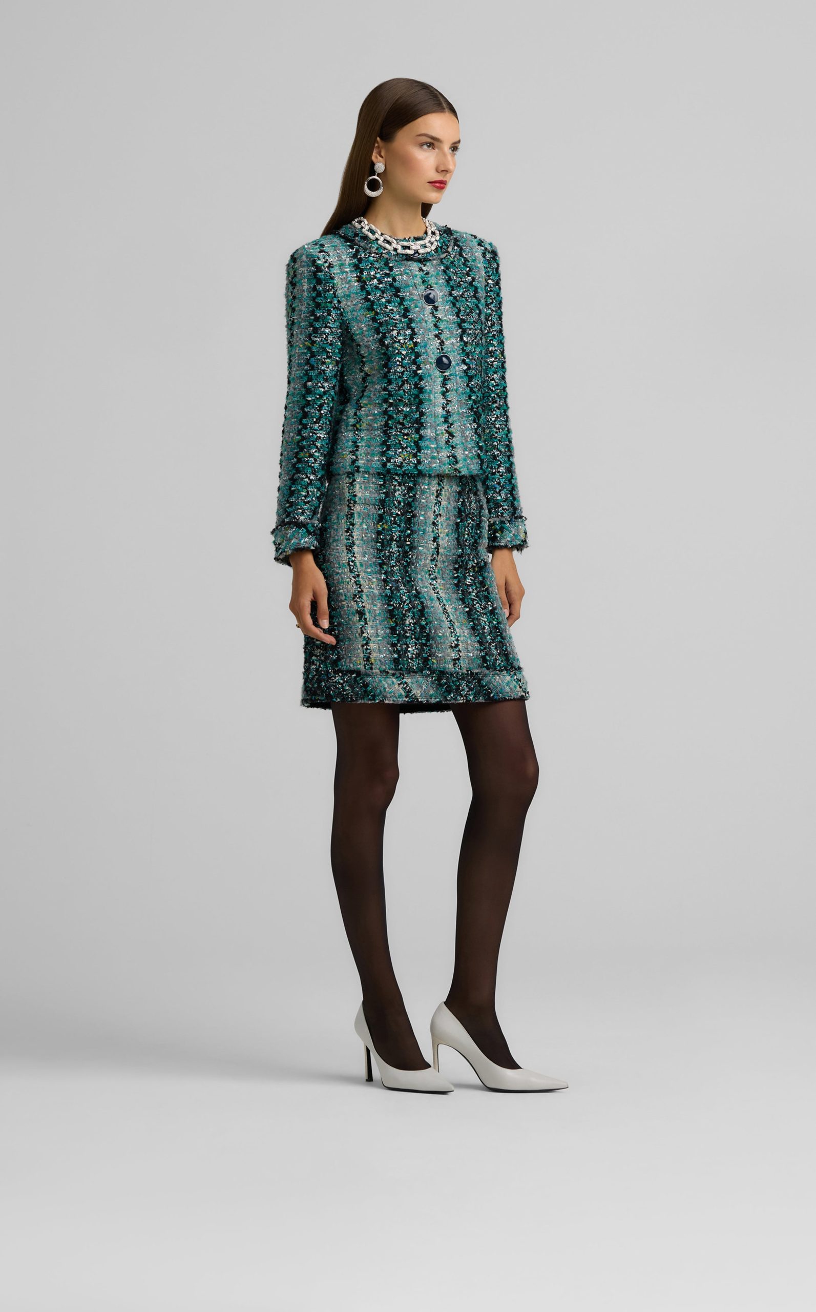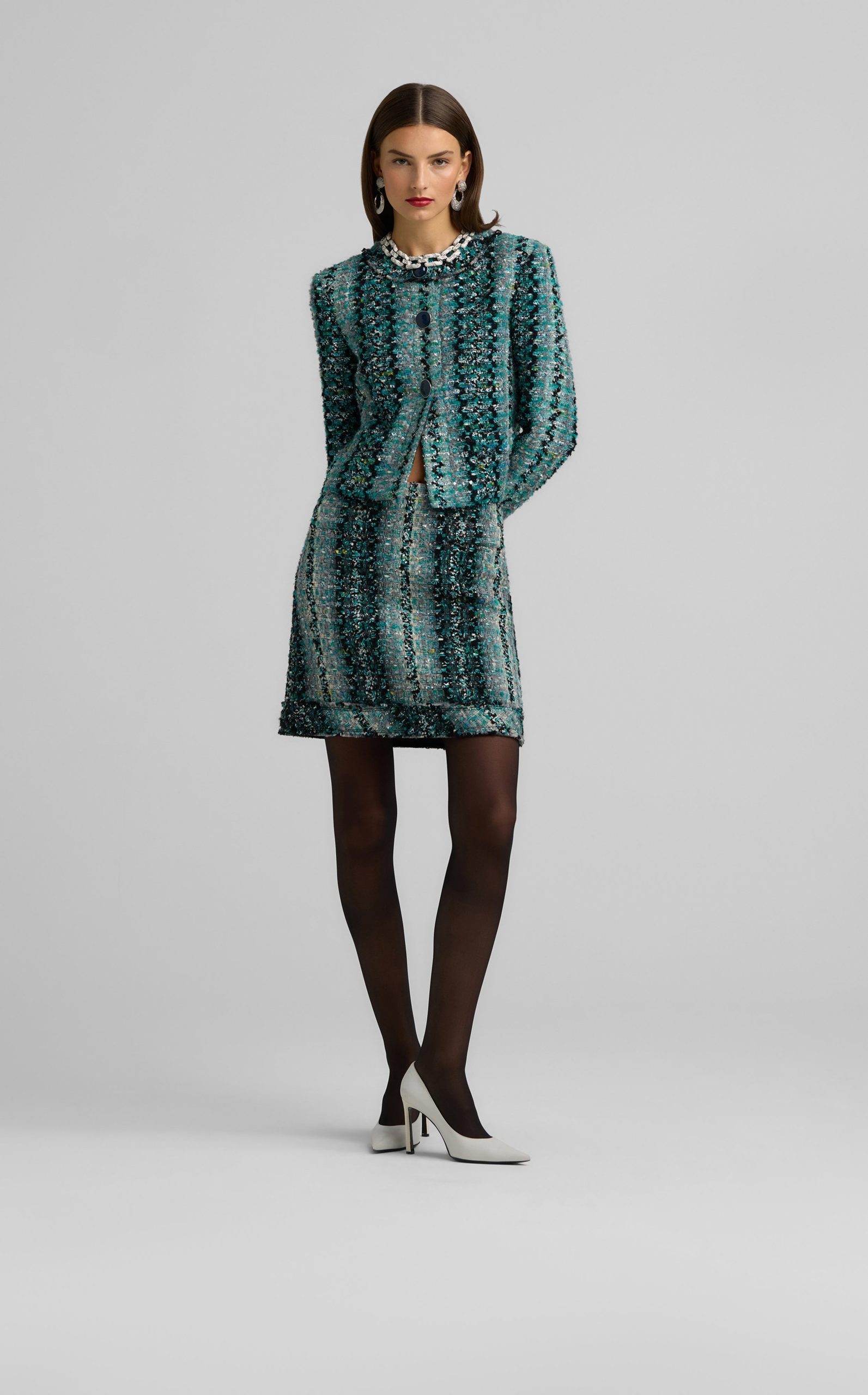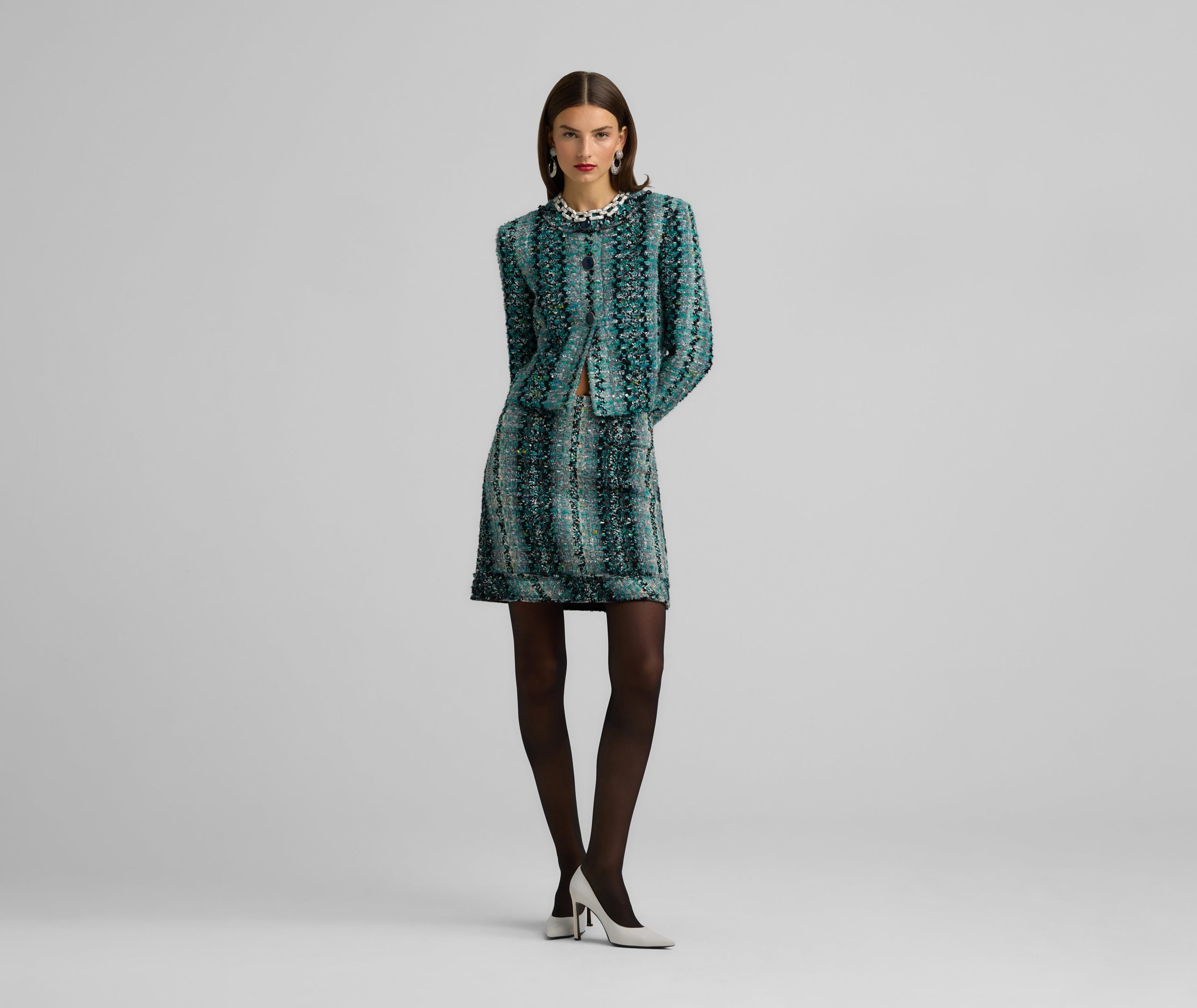 St. John Women’s Foiled Tweed Skirt | Juniper & Aquamarine multi
