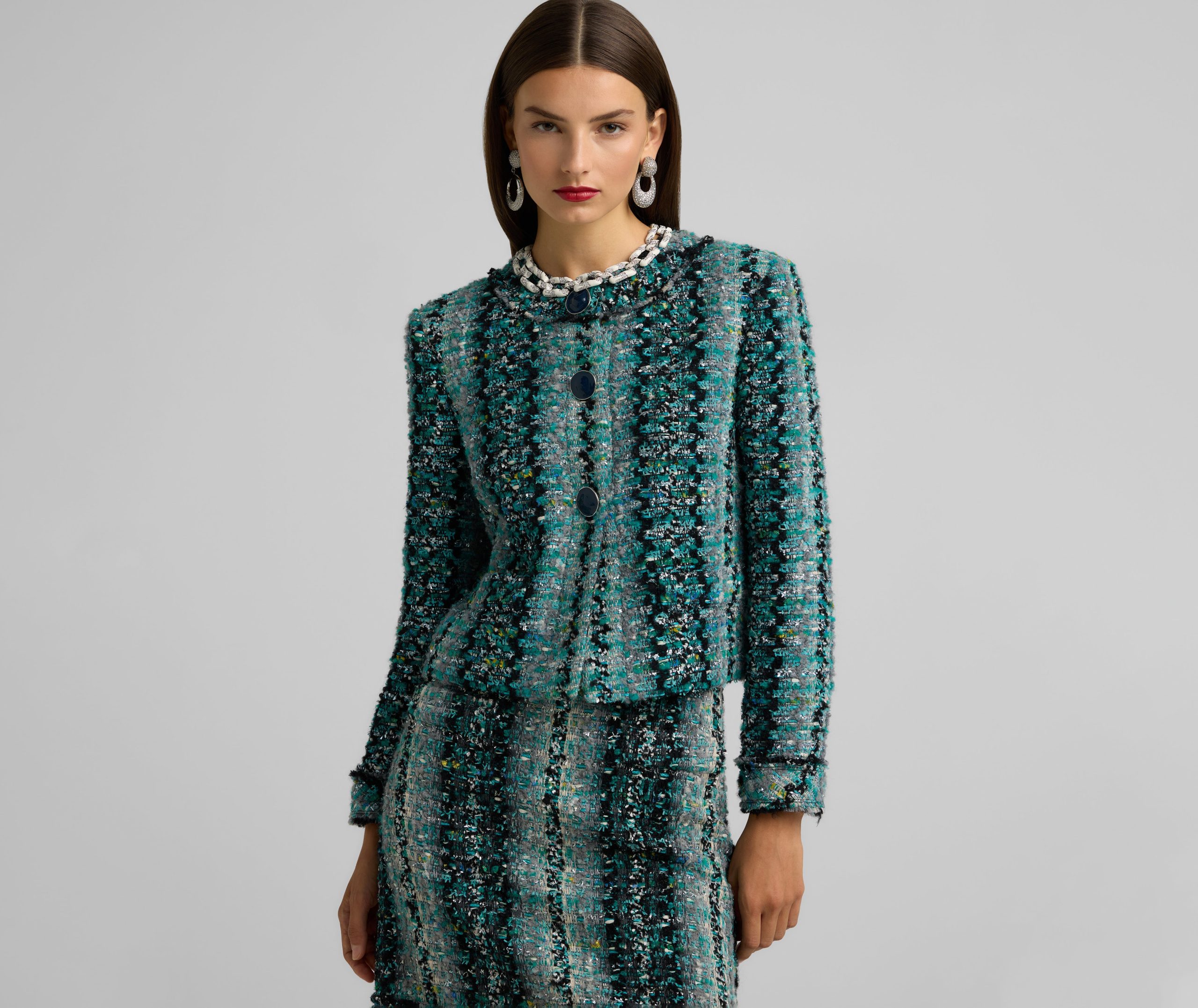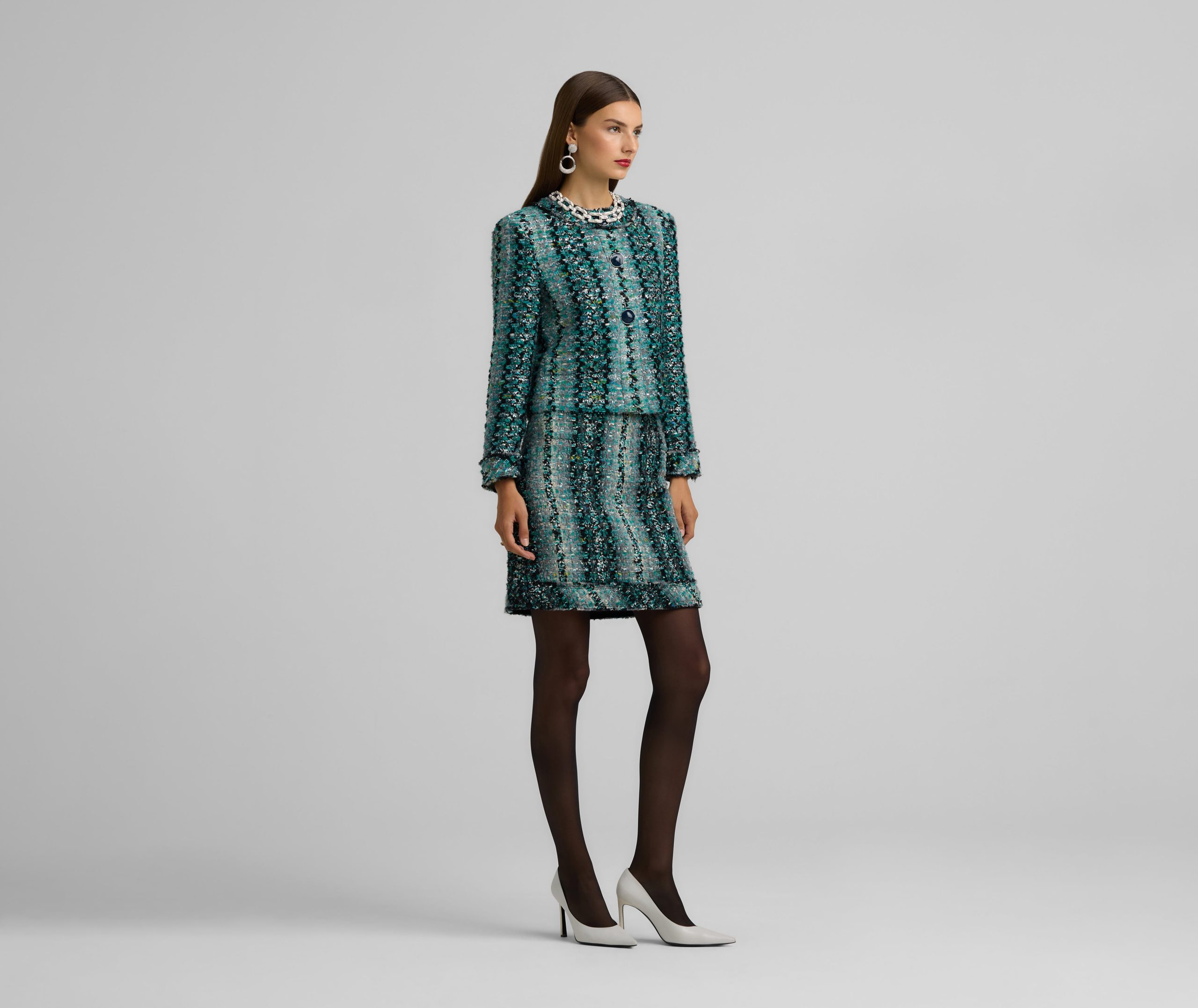 Be the first to review “St. John Women’s Foiled Tweed Skirt | Juniper & Aquamarine multi”
