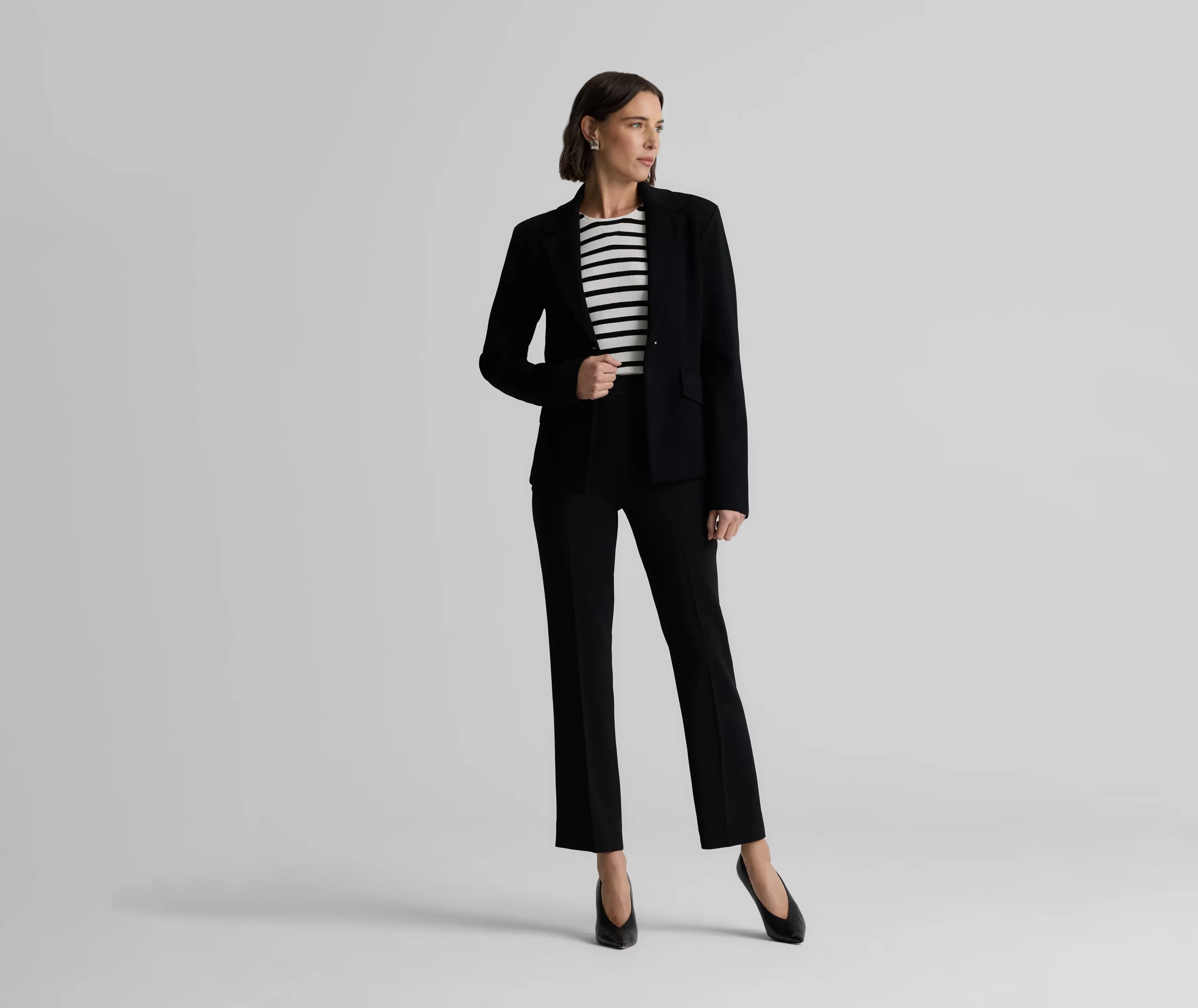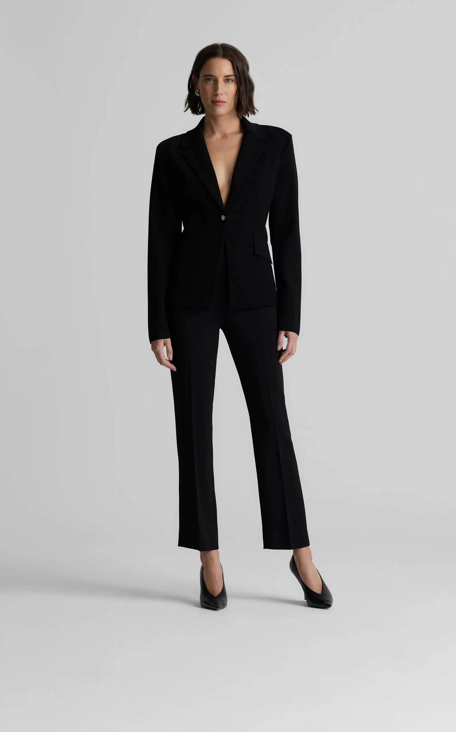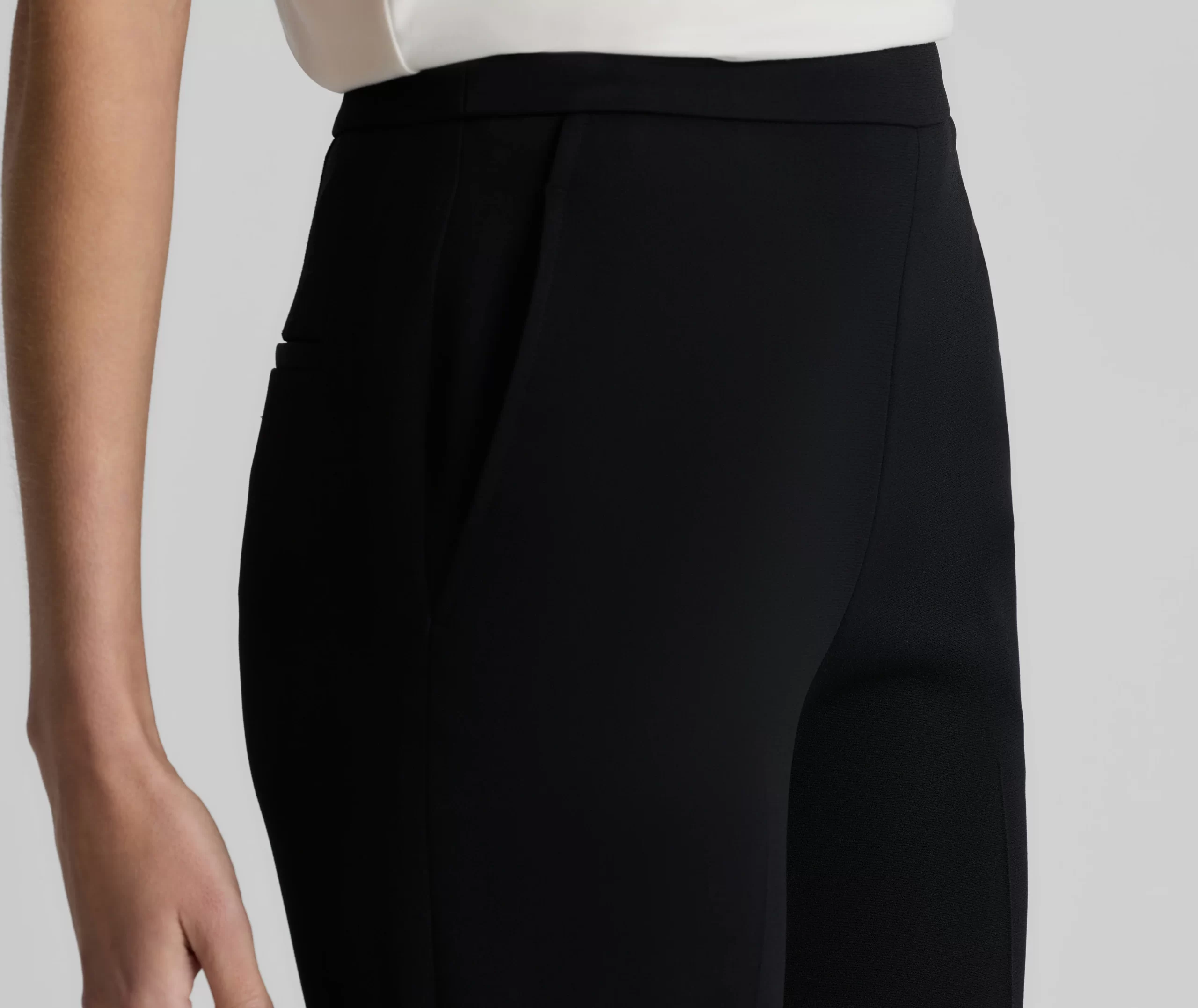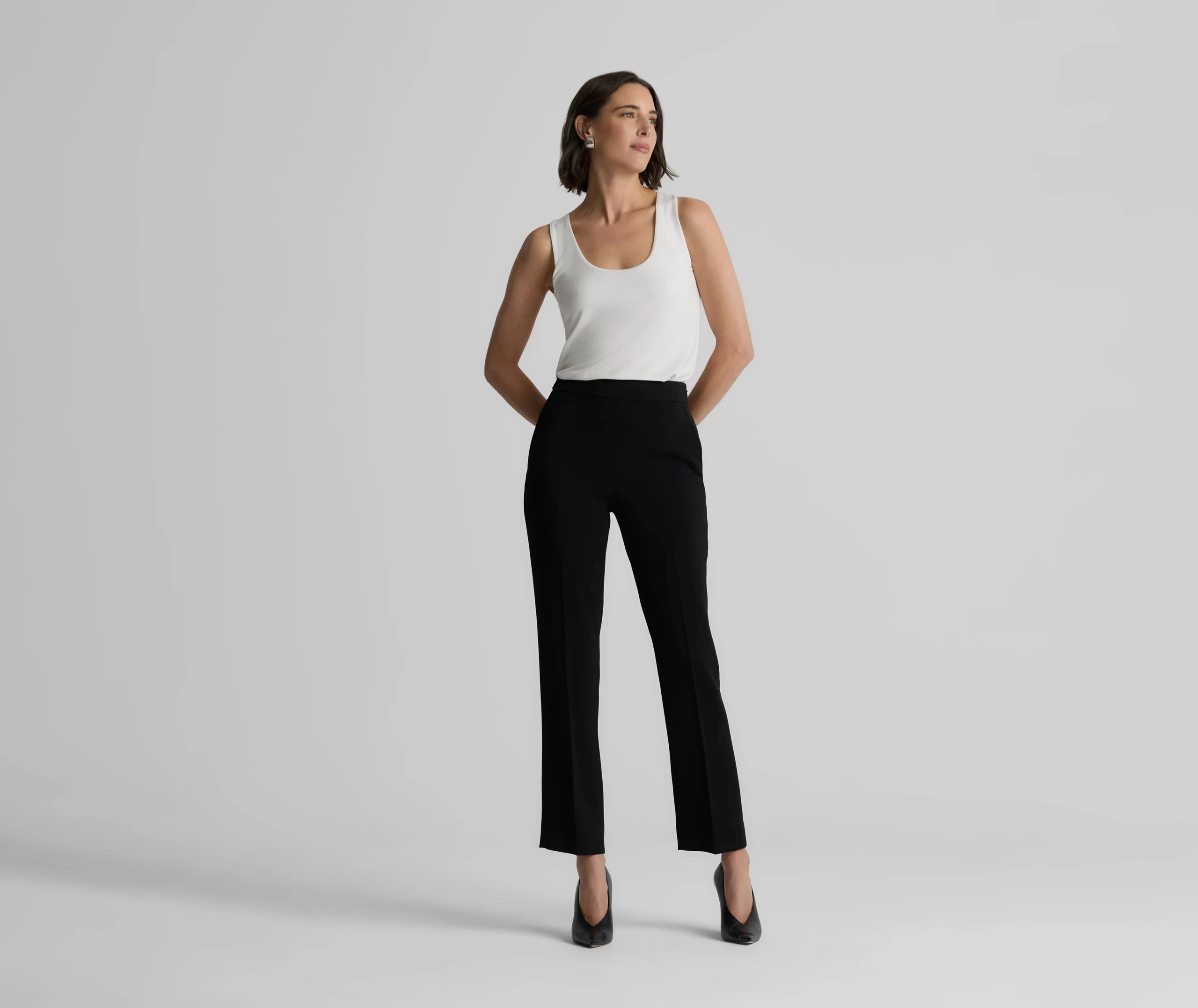 Cut from a luxurious Stretch Italian Viscose Blend, this expertly tailored, ankle-glazing pant moves effortlessly with you throughout the day—transitioning seamlessly from the office to after-hours cocktails without ever losing its polish.