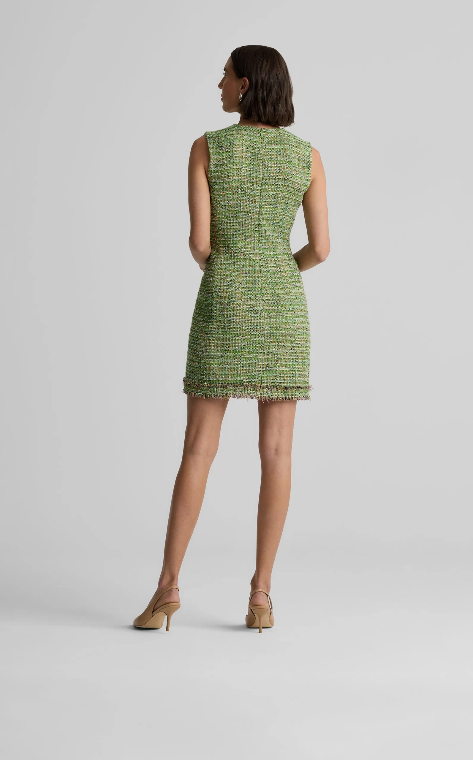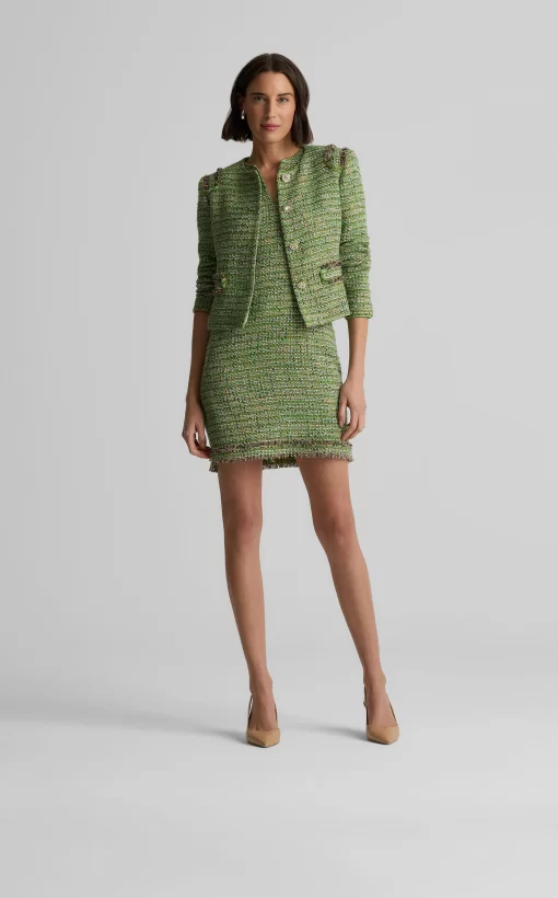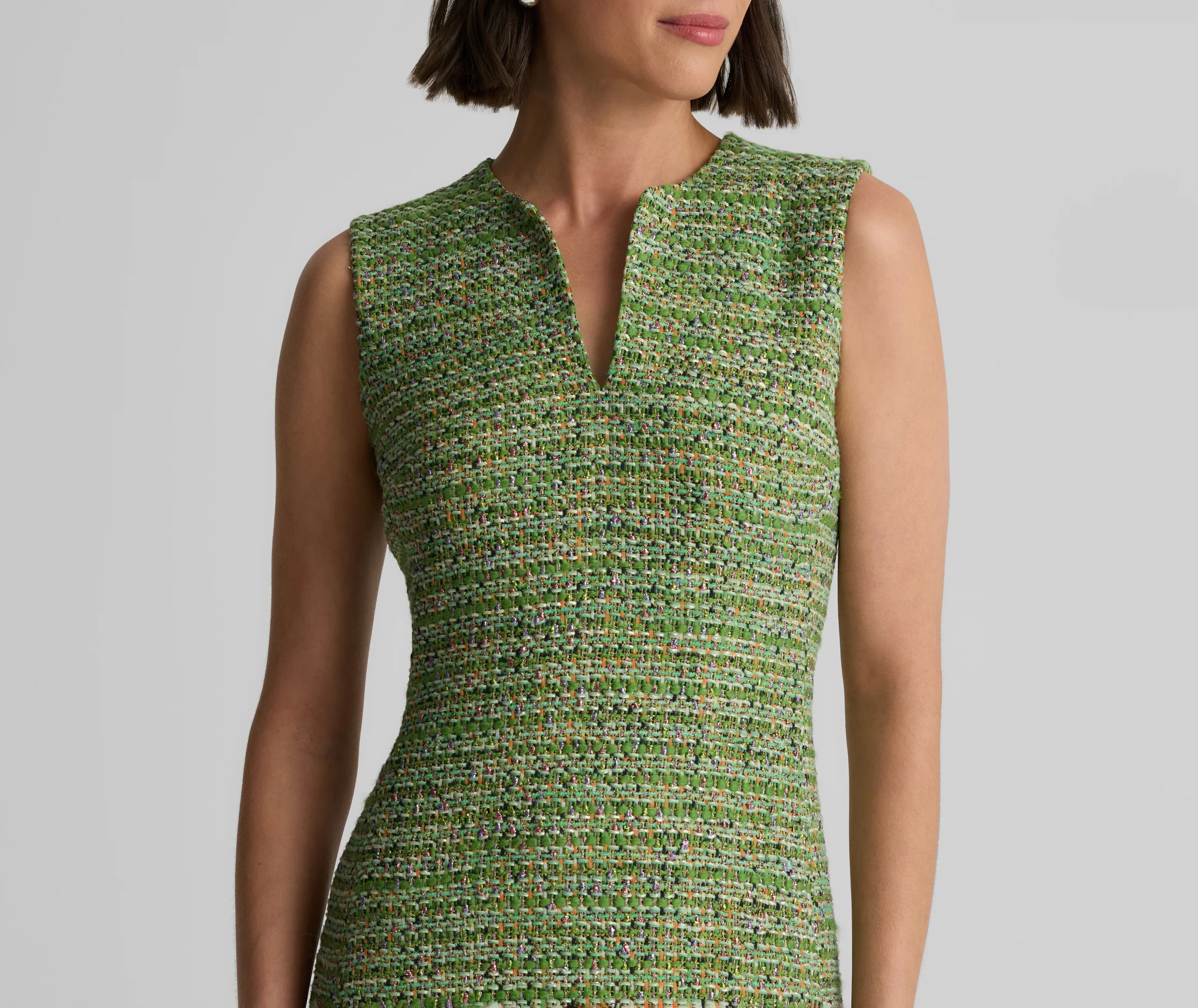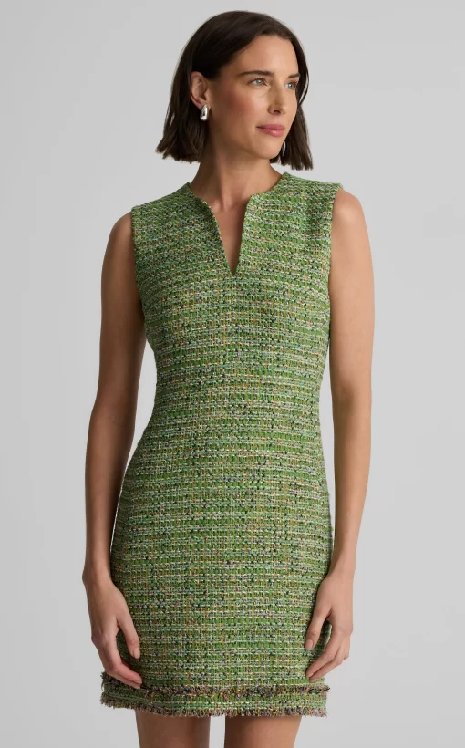 Our luxe Lenox Tweed gives the Larkin its signature texture and shimmer. Whether worn on its own or layered under its coordinating Arden Jacket, this sleeveless, v-neck sheath dress was designed to steal the spotlight at all your formal affairs.