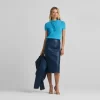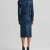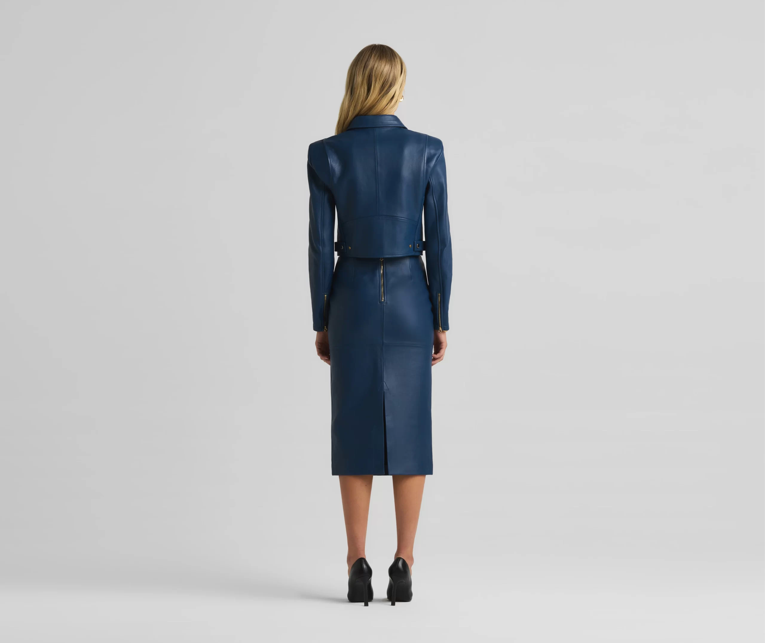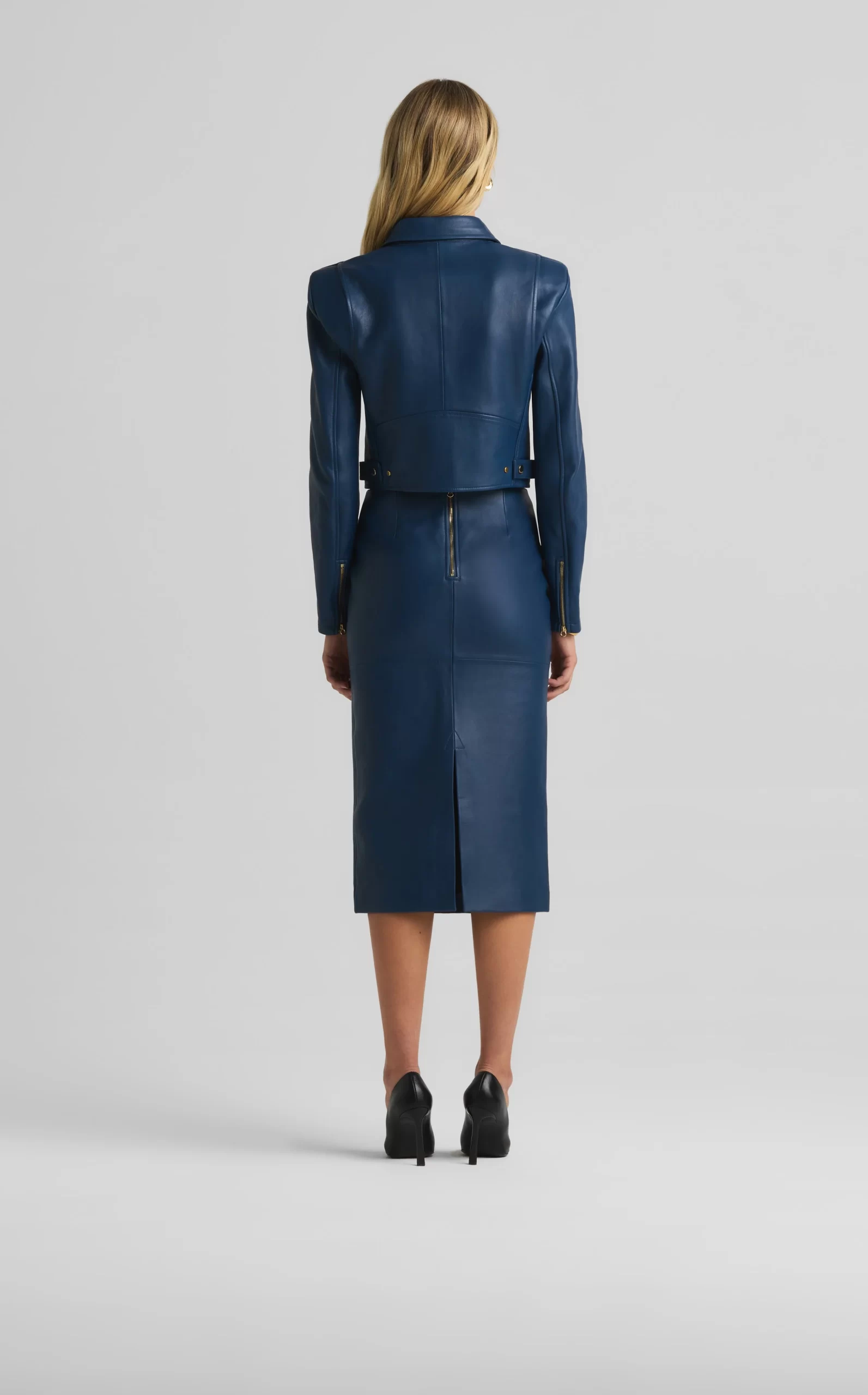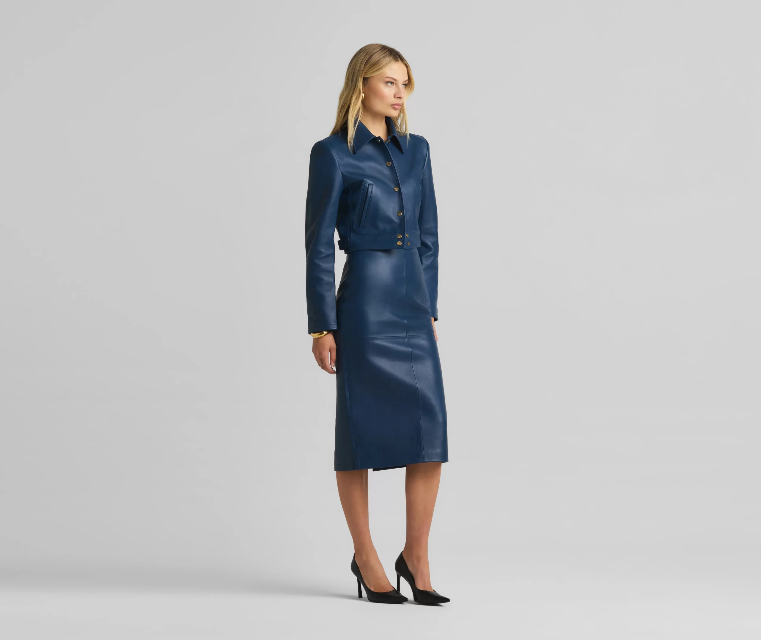 This vibrant double face leather skirt exudes luxury in its perfectly tailored simplicity and tonal seaming, making it a beautiful investment piece.