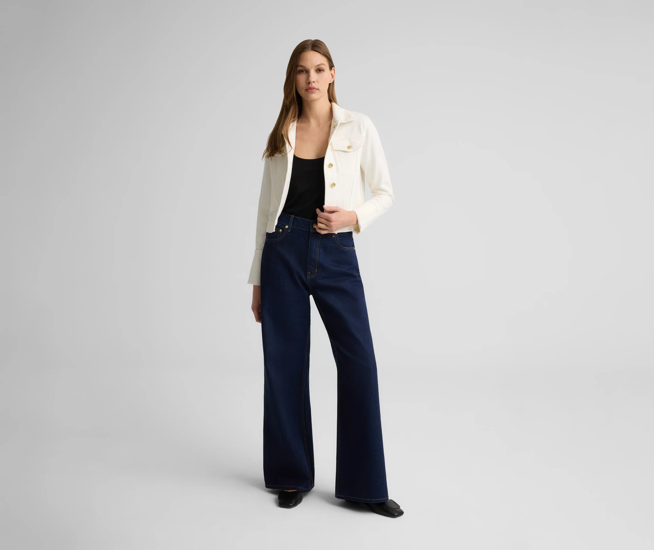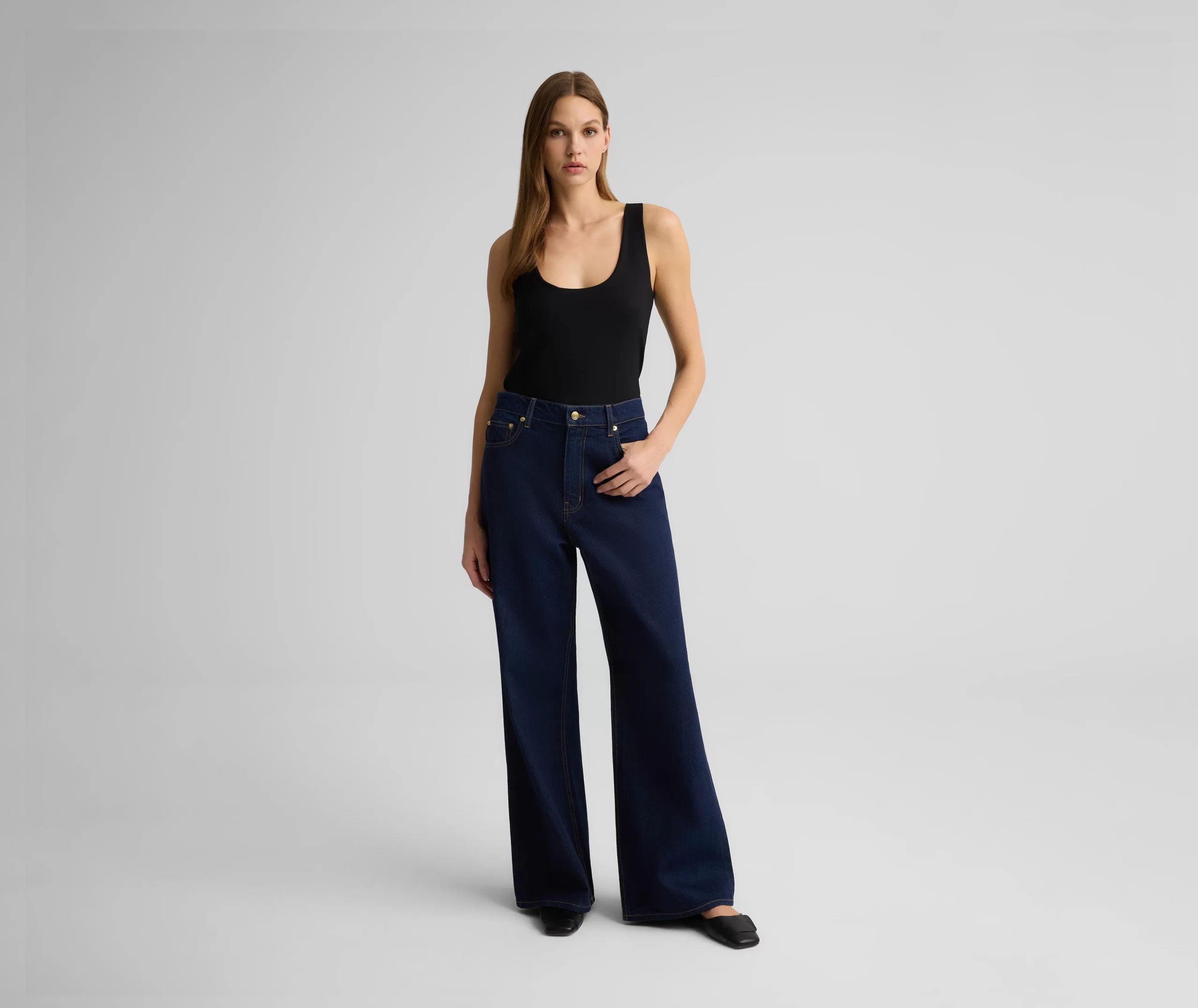 Perhaps the most flattering denim ever, this just-dark-enough wide leg jean is guaranteed to add inches to your silhouette.