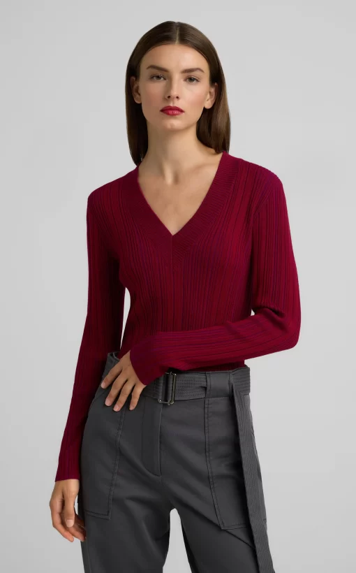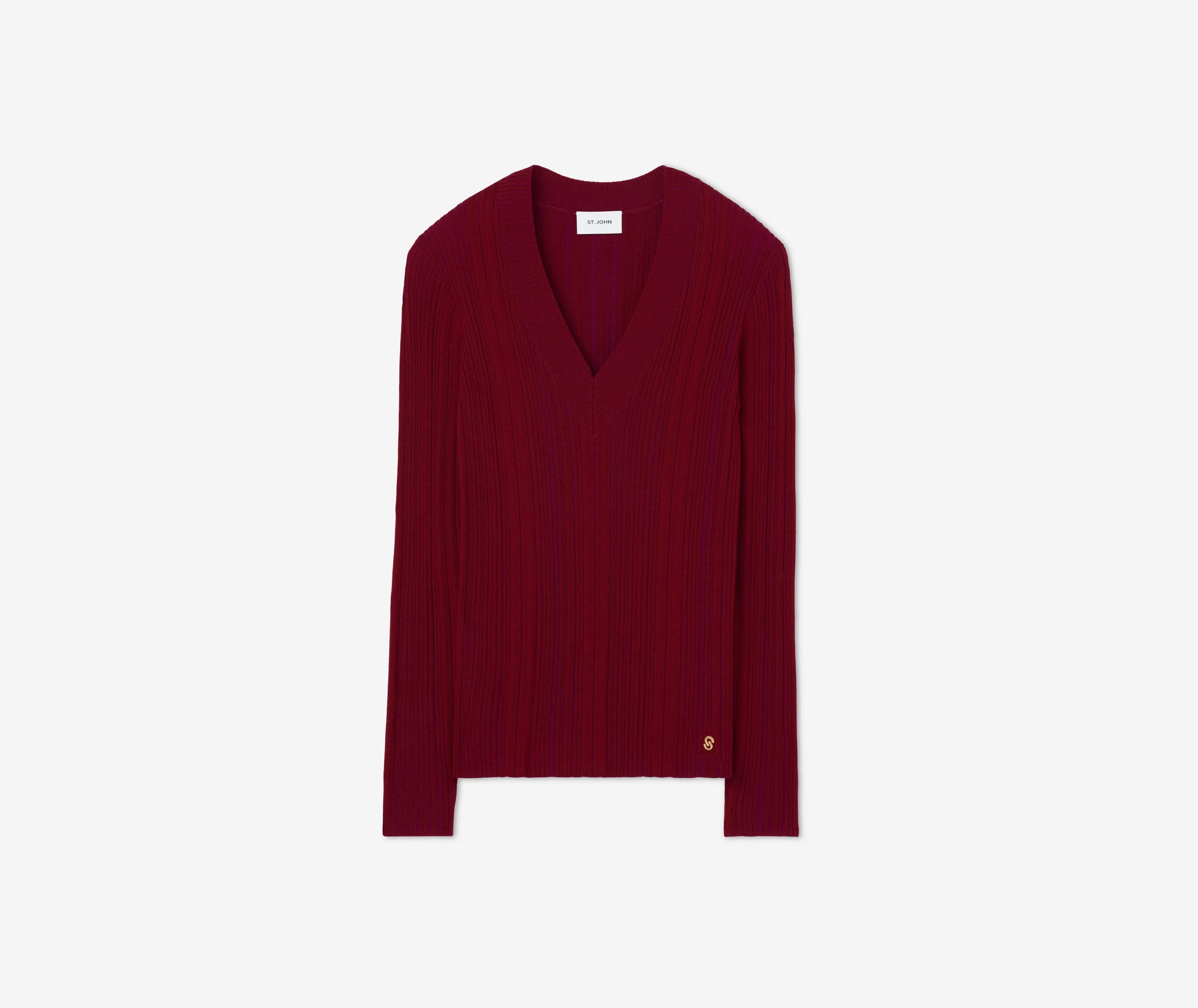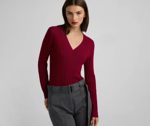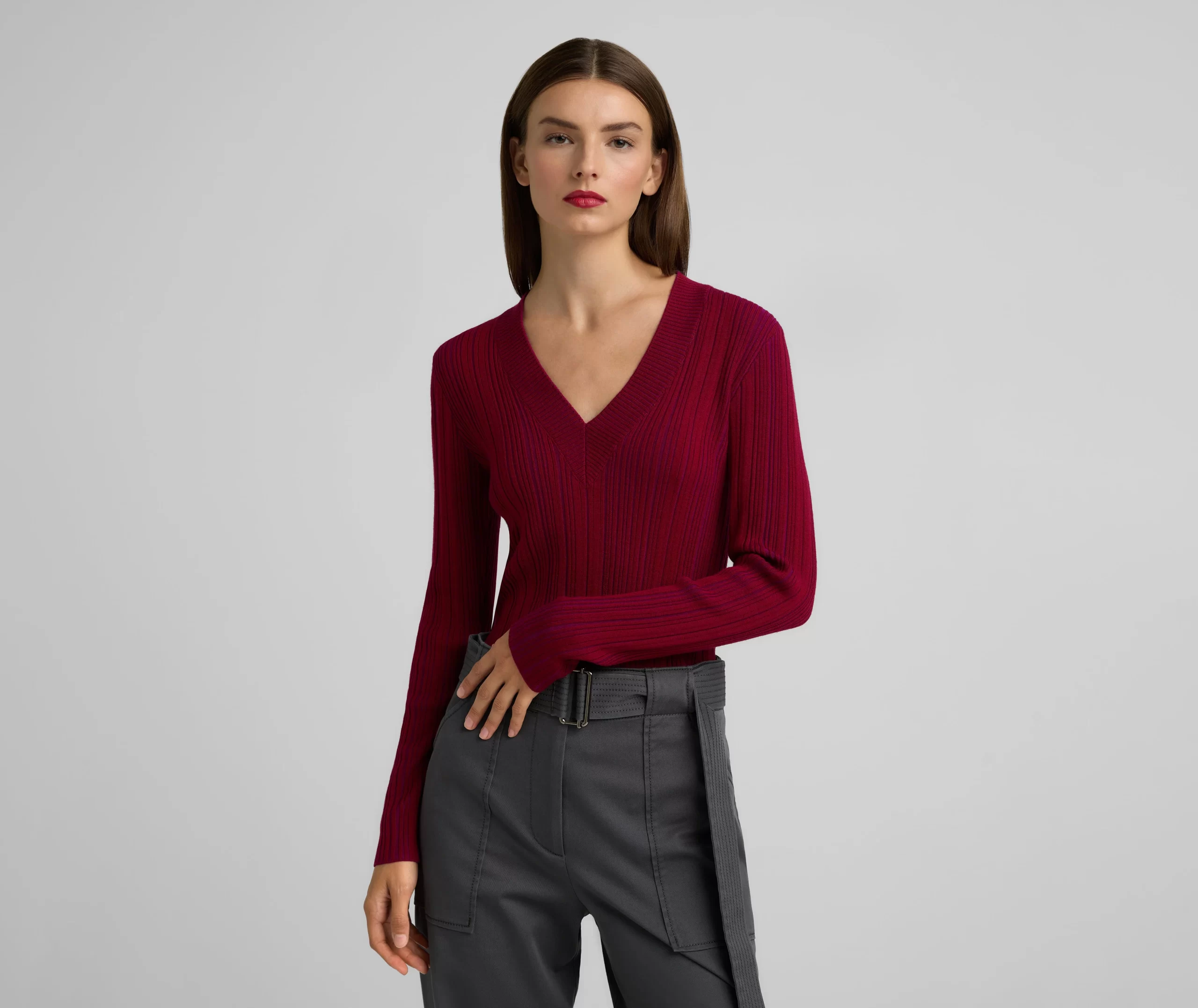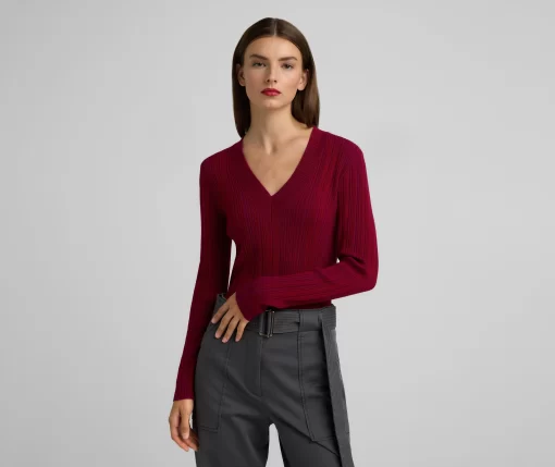 Crafted from 100% wool, this plaited rib V-neck sweater brings a tonal striped texture to a simple silhouette, a luxurious pick for cooler months.