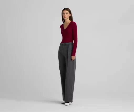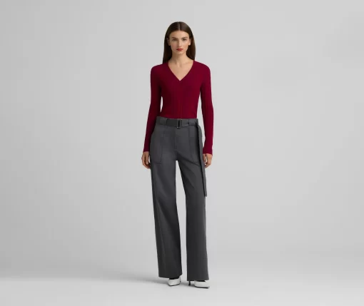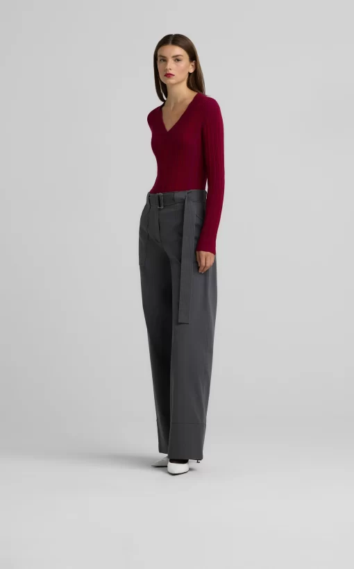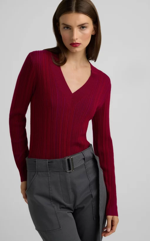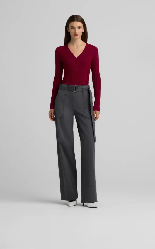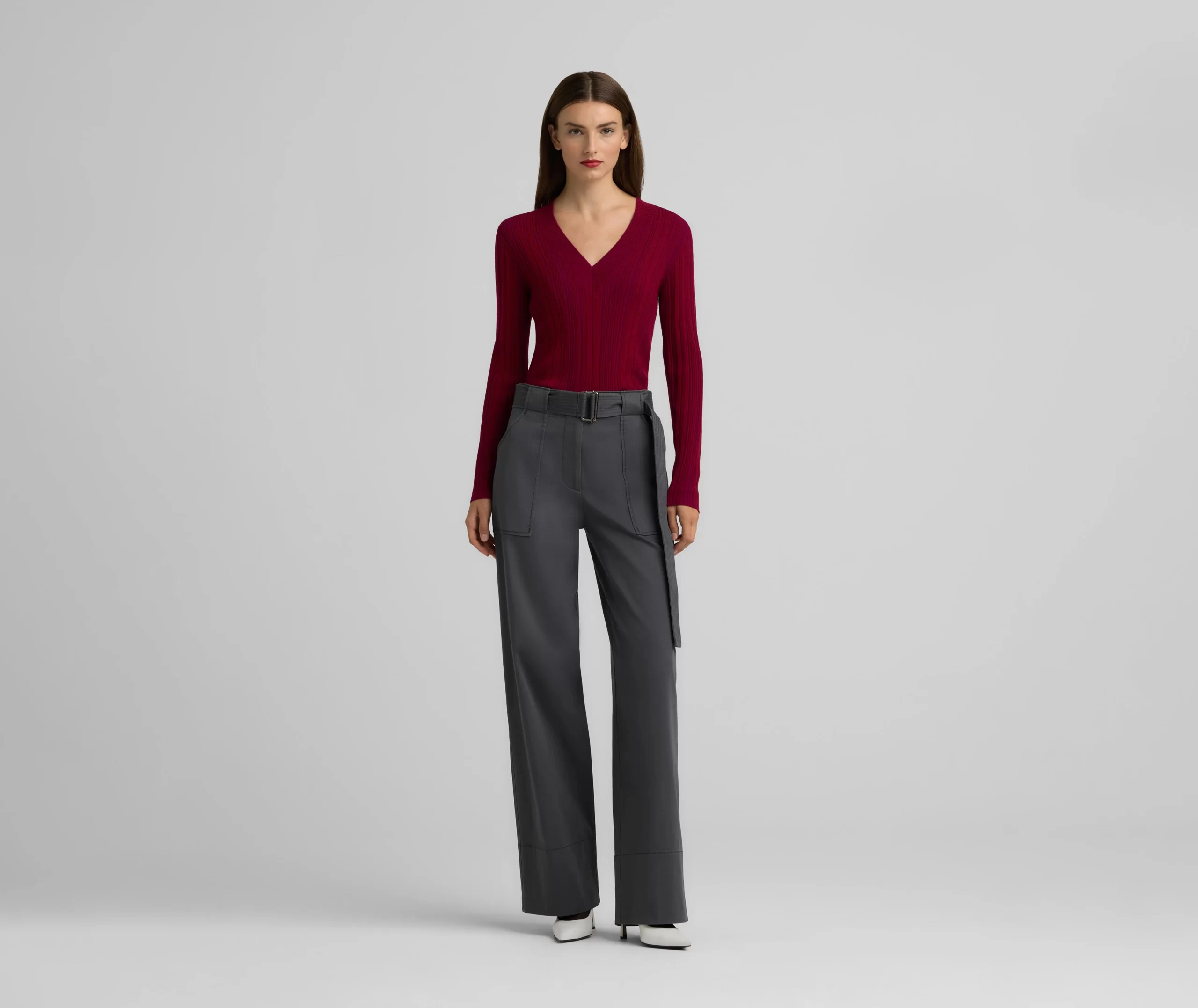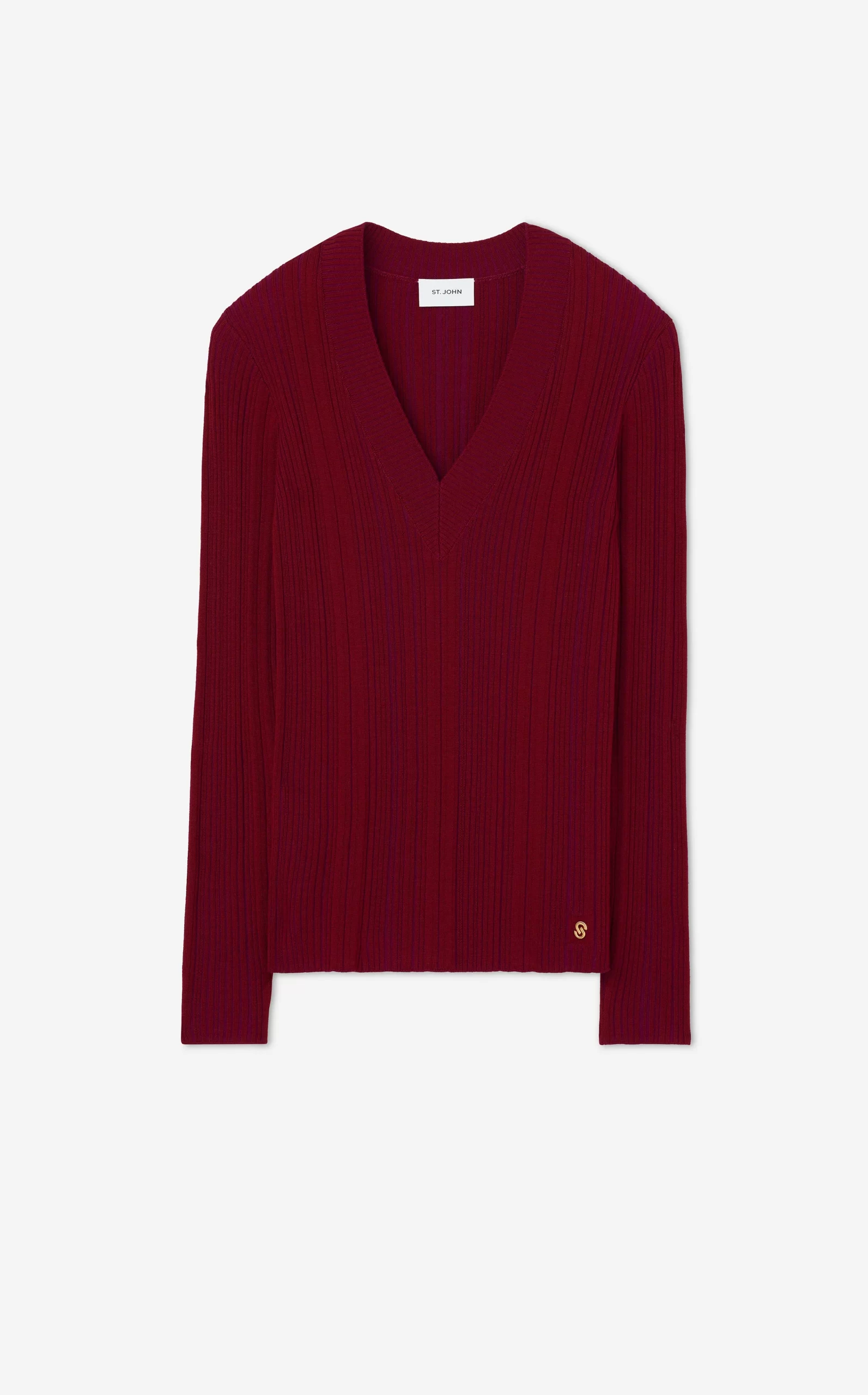 Crafted from 100% wool, this plaited rib V-neck sweater brings a tonal striped texture to a simple silhouette, a luxurious pick for cooler months.