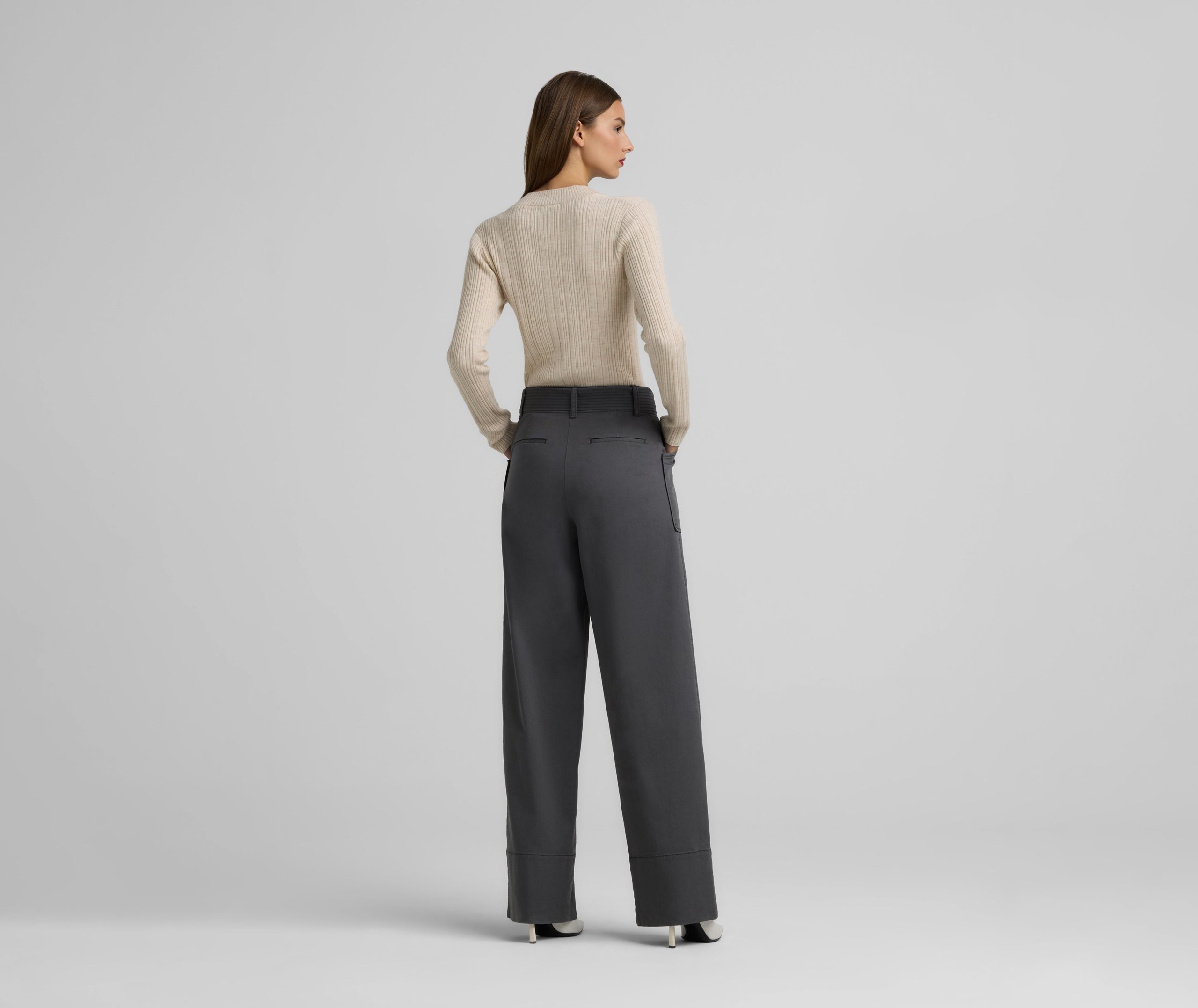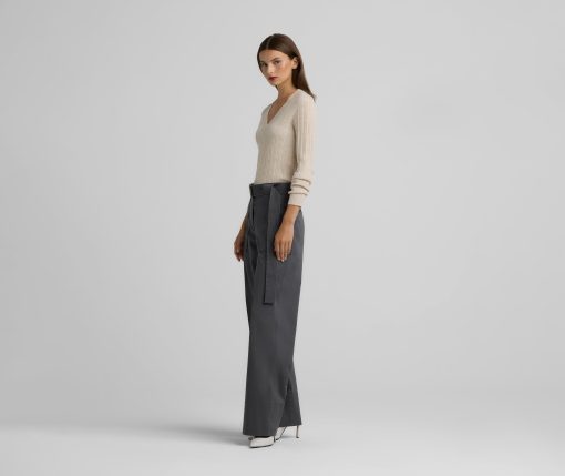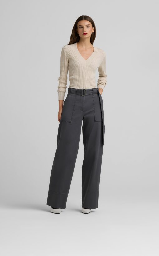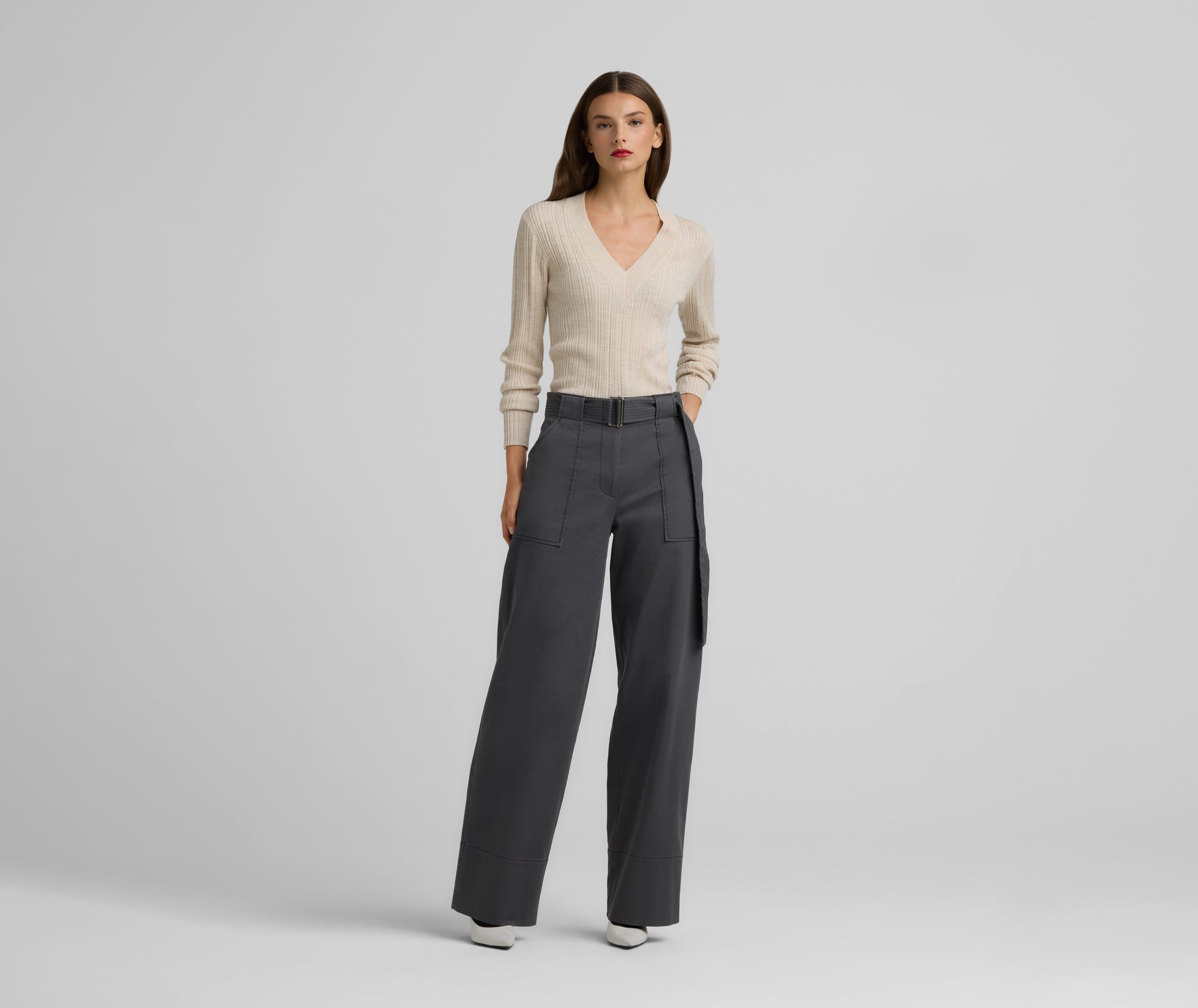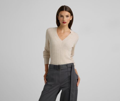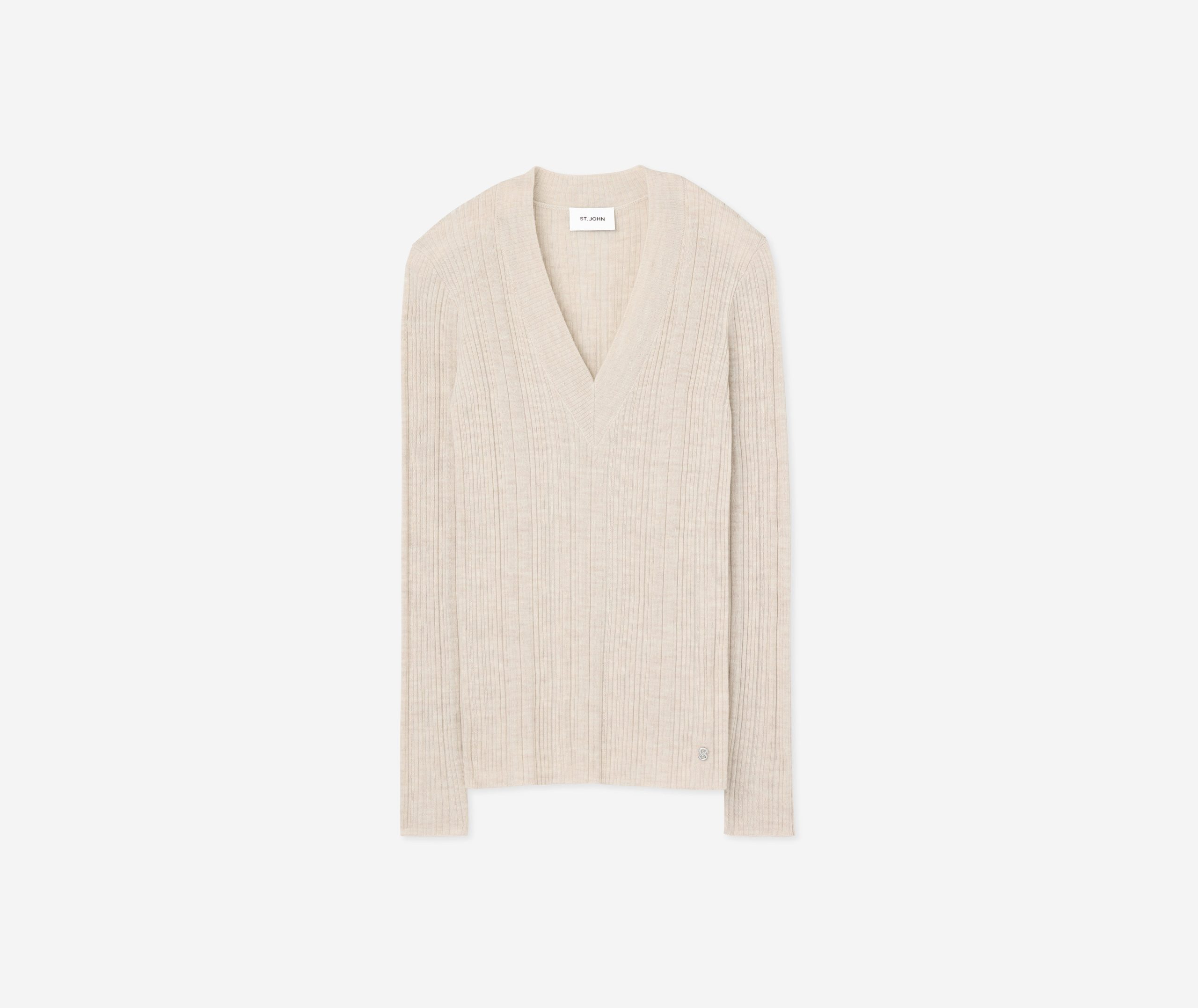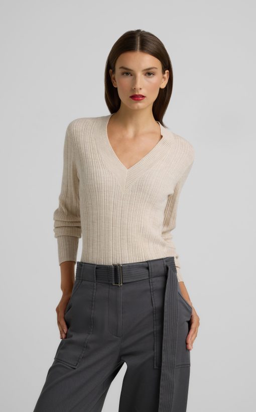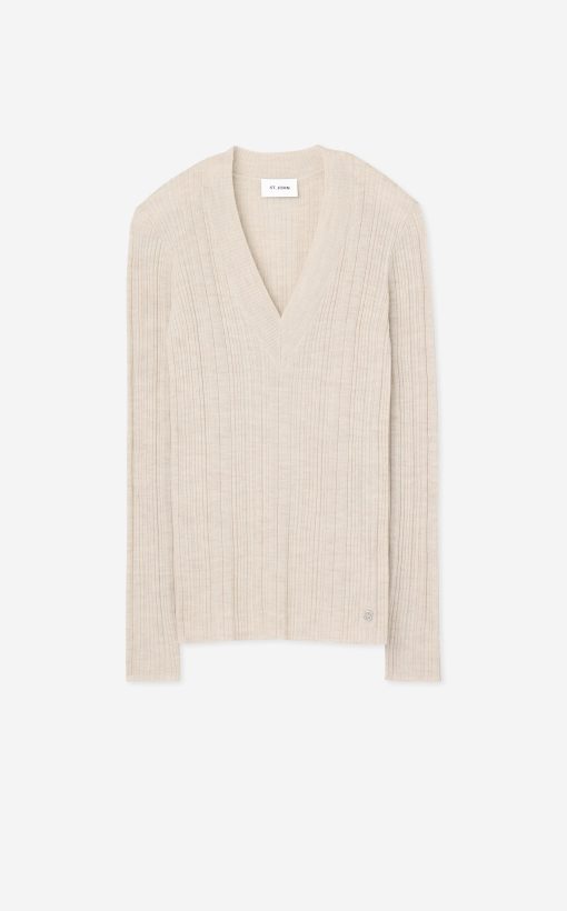 Crafted from 100% wool, this plaited rib V-neck sweater brings a tonal striped texture to a simple silhouette, a luxurious pick for cooler months.