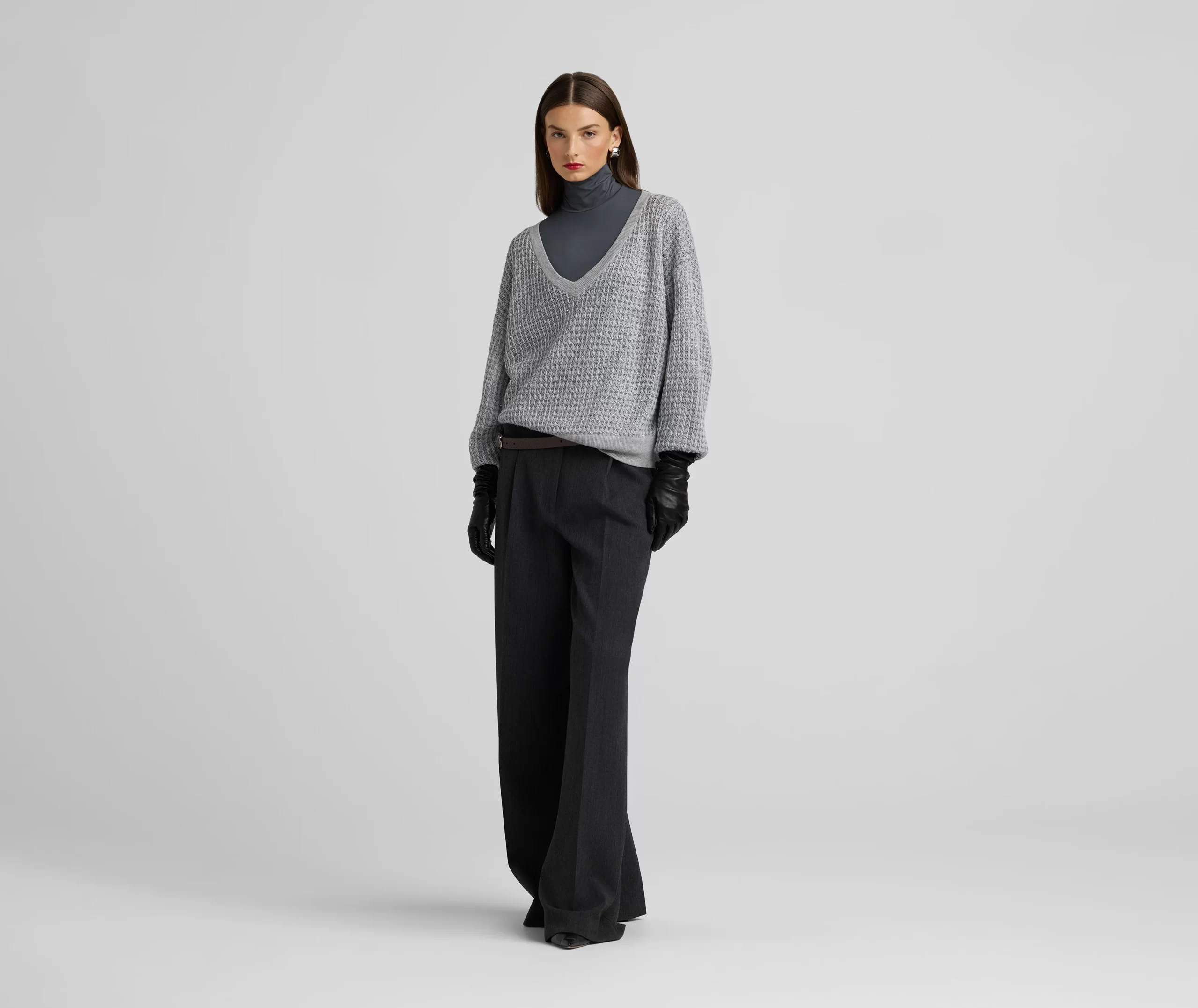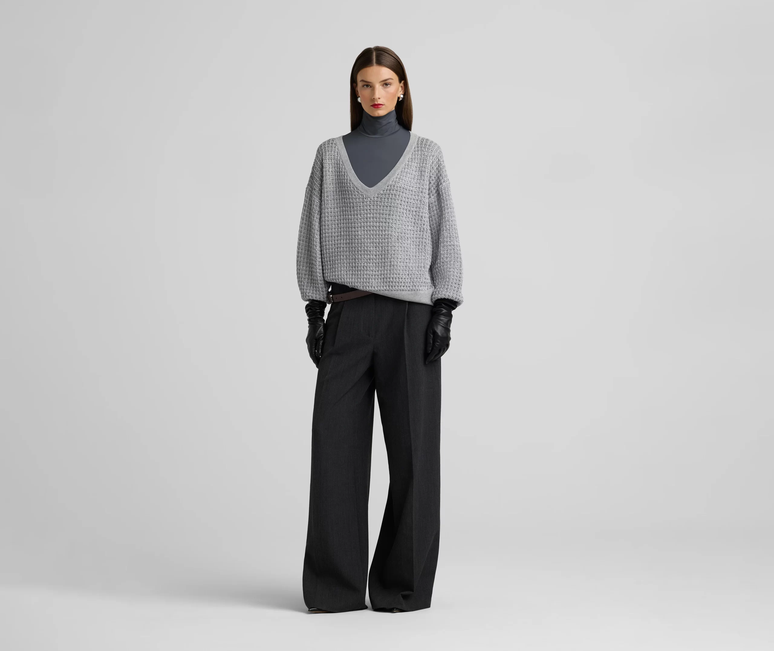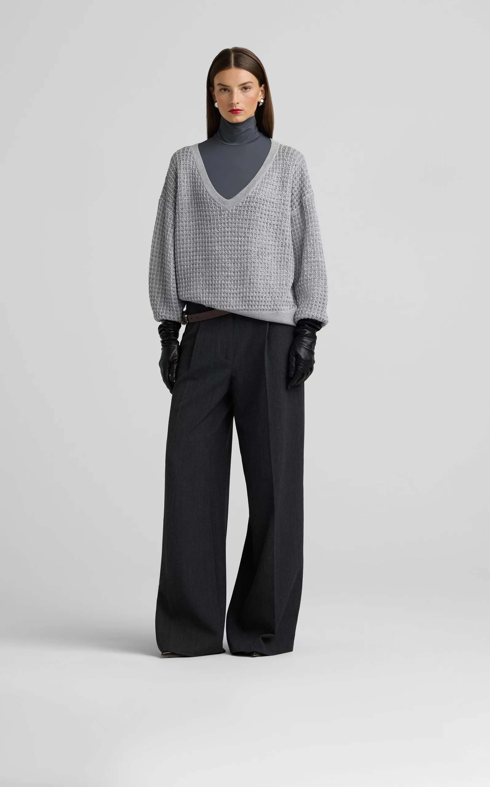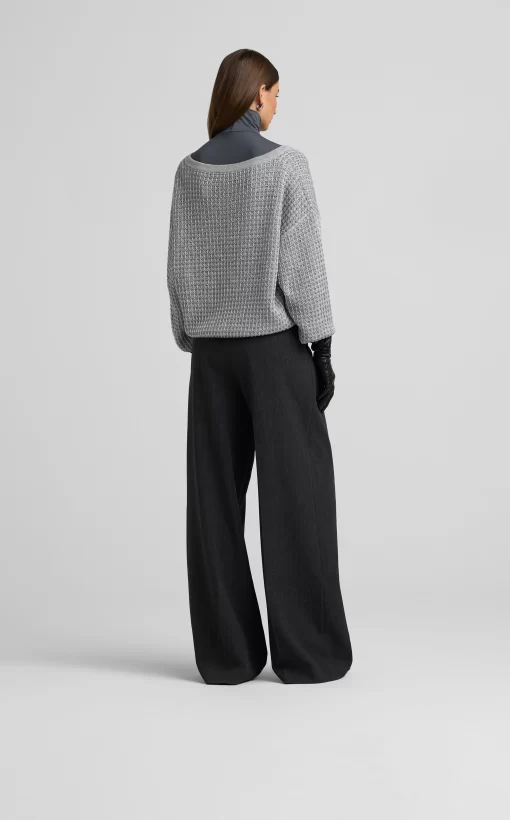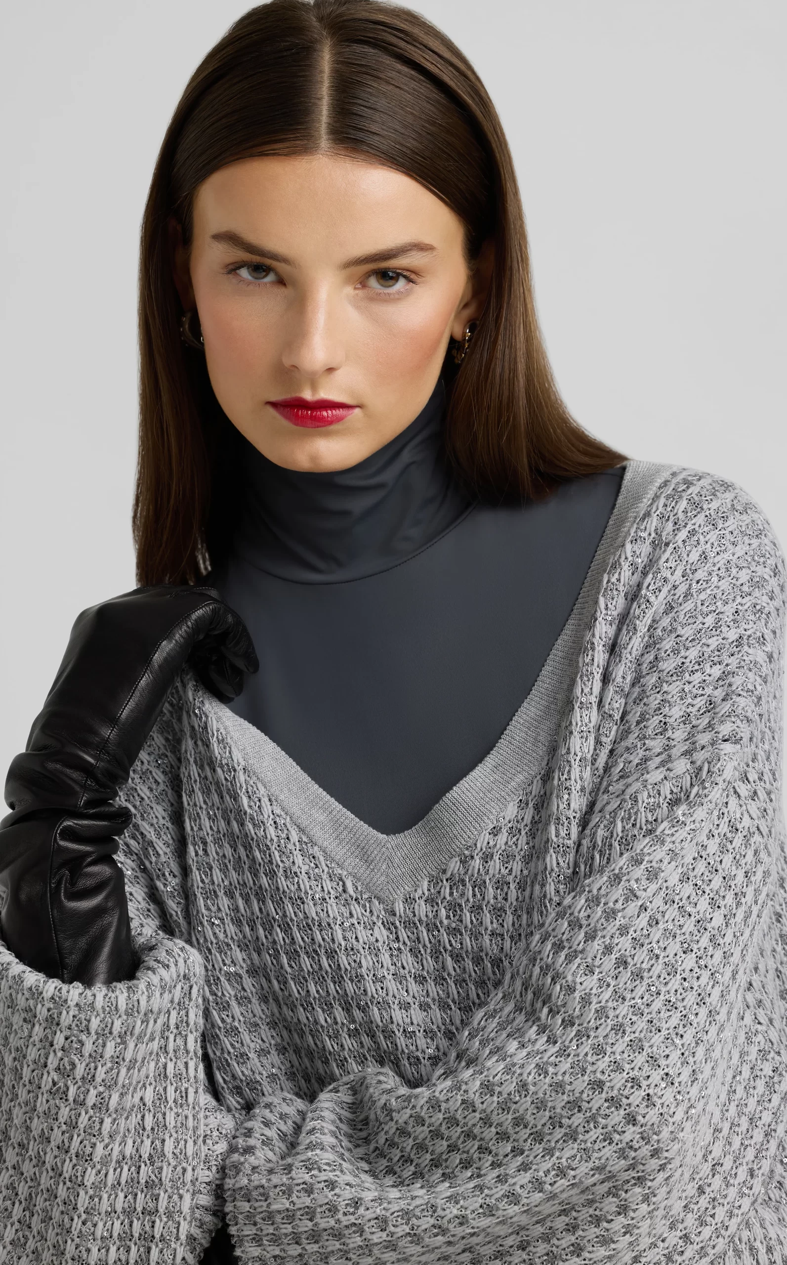Sparkly sequins dress up a relaxed fit, textured V-neck sweater, a cozy and chic piece that elevates daytime wear and goes full glam for evening.
