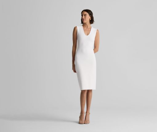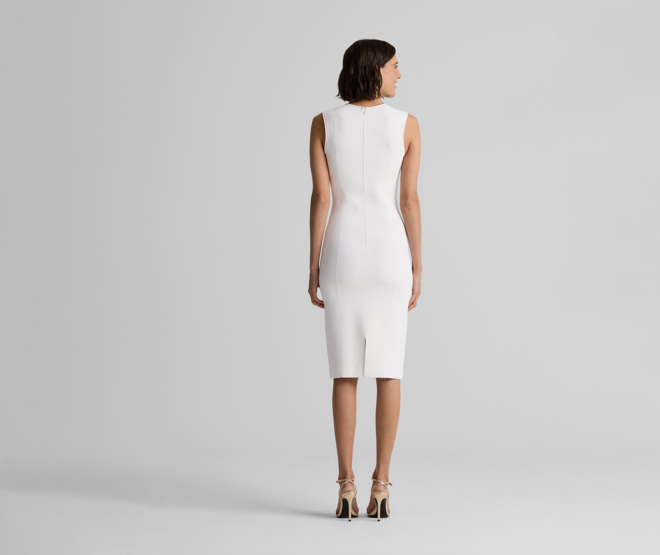 Crisp yet comfortable, the Victoria in classic Ivory is a sophisticated addition to your workwear wardrobe, but its flattering front seams and V-neckline make it a versatile staple for occasions well beyond the office. Made from smooth Santa Rosa Knit, this sleeveless dress can be worn on its own to make a modern, minimalist statement, or layered beneath our matching Harper Jacket for coordinated polish.