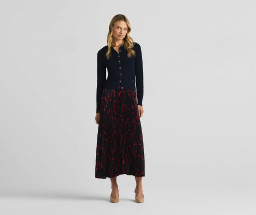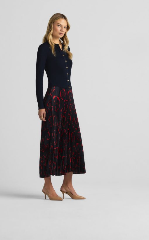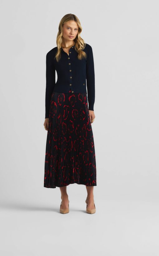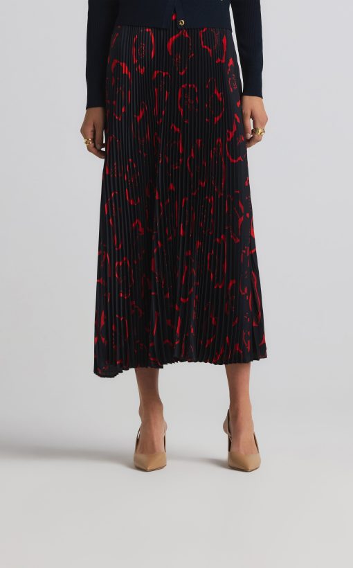 Fine pleats lead to captivating movement, while a vintage floral print decorates this playful and pretty midi skirt.